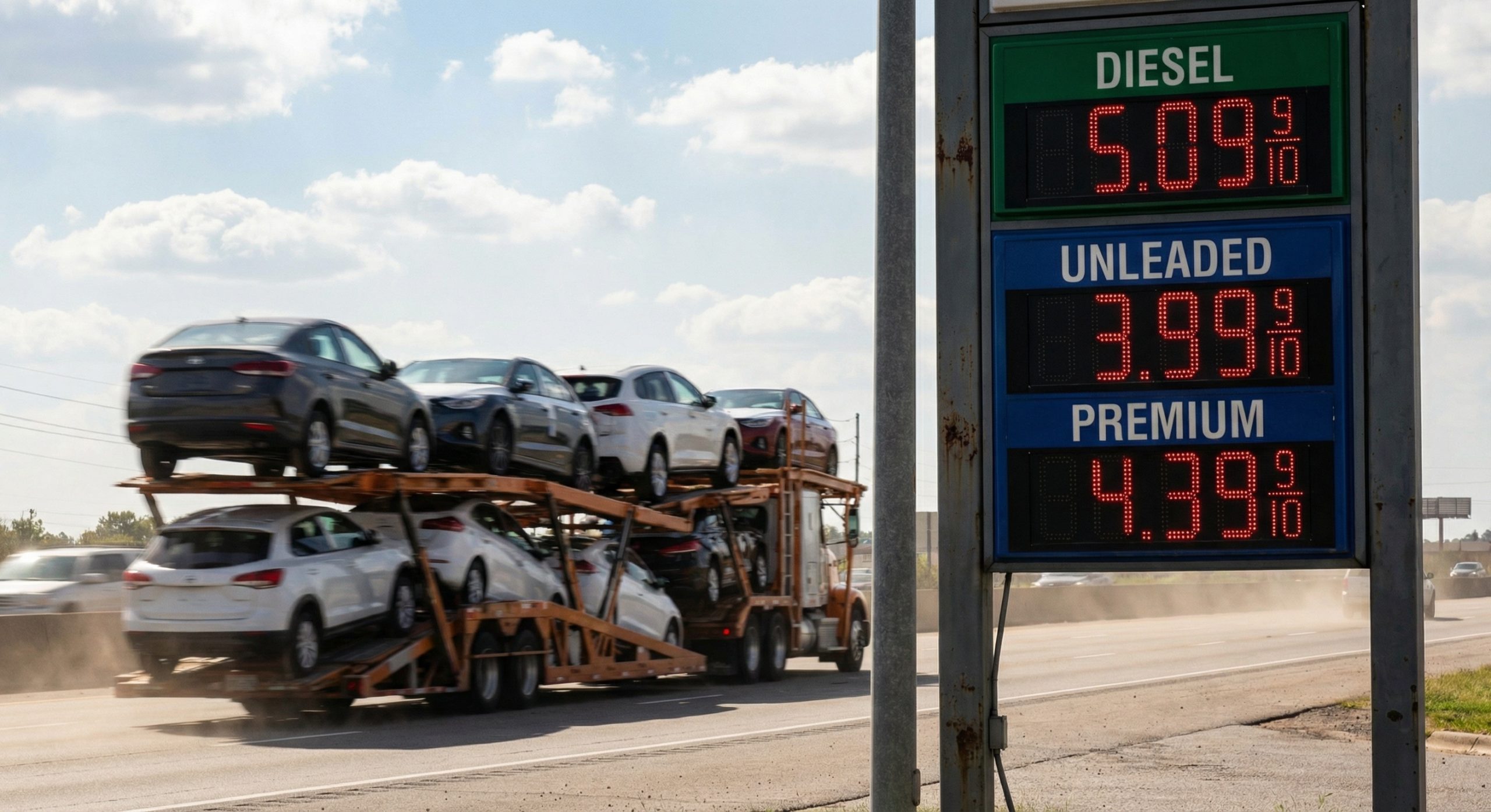 That’s $530–$795 more per trip in fuel alone. Spread across 8–10 vehicles, each shipment absorbs roughly $55–$100 in additional fuel cost compared to where pricing was two months ago.